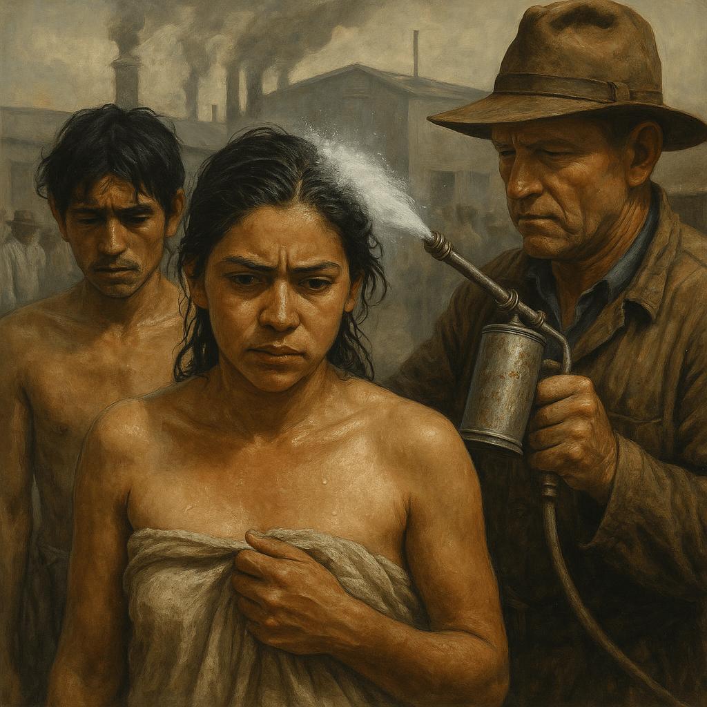 - 1940s–1960s: Braceros sprayed with DDT and processed through fumigation centers.
